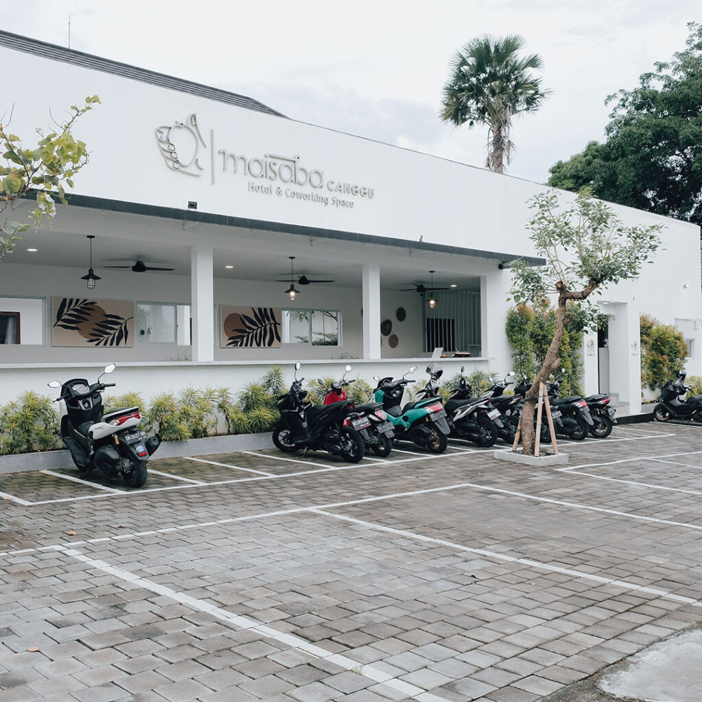 Our generous 150 Sqm secured free parking area with CCTV provides great accessibilty, security, and less hassle at the same time. An essential facility to have in the hype of Berawa, Canggu.