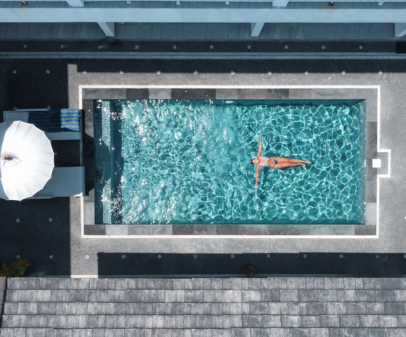 The hotel has a balmy swimming pool adjancent to the 30 sqm tropical lawn and its shared Garden Kitchen for in-house guests, between the Hotel and the Coworking Space.