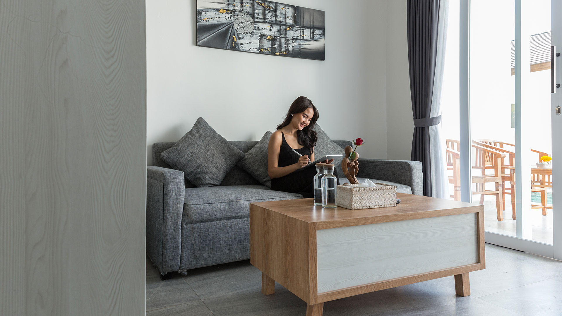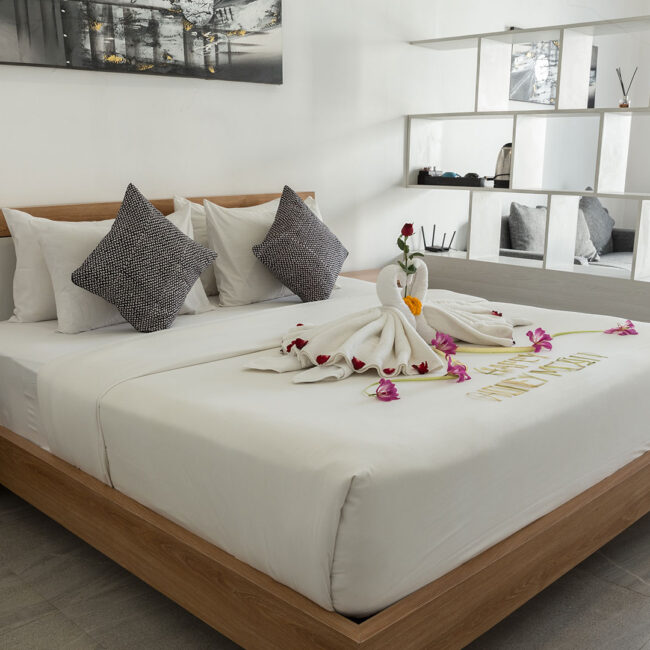 Styled in a sleek, contemporary design with the twist of Balinese artwork and amenities, each of 40 sqm Deluxe Room has a double deluxe bed, 175Mbps Hi-Speed Wifi, spacious bathroom with a separate standing shower, a dedicated living room with television, international TV channel, Netflix support with your personal account, safety-box and a private terrace in each room facing the garden or swimming pool.